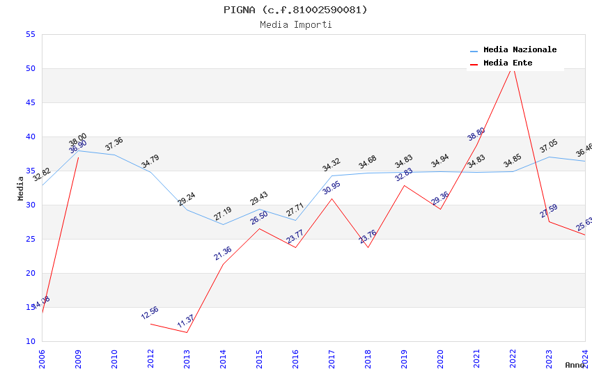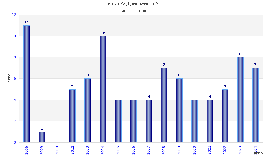 Anno Firme Importi Media Naz. Reg. Prov. Comu.