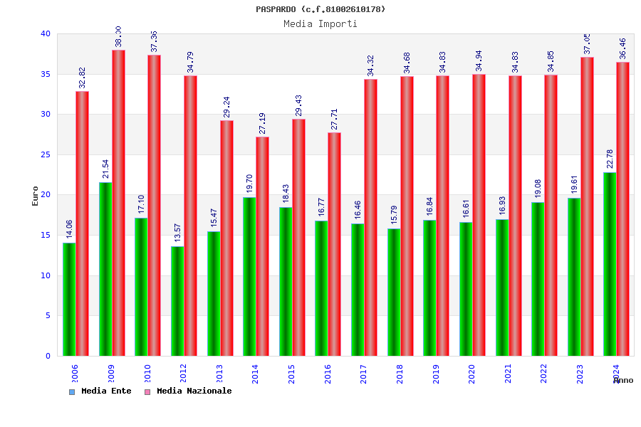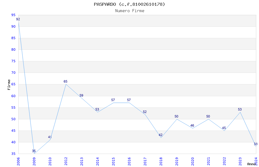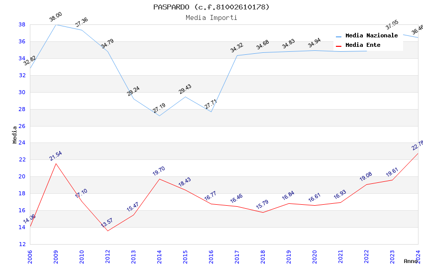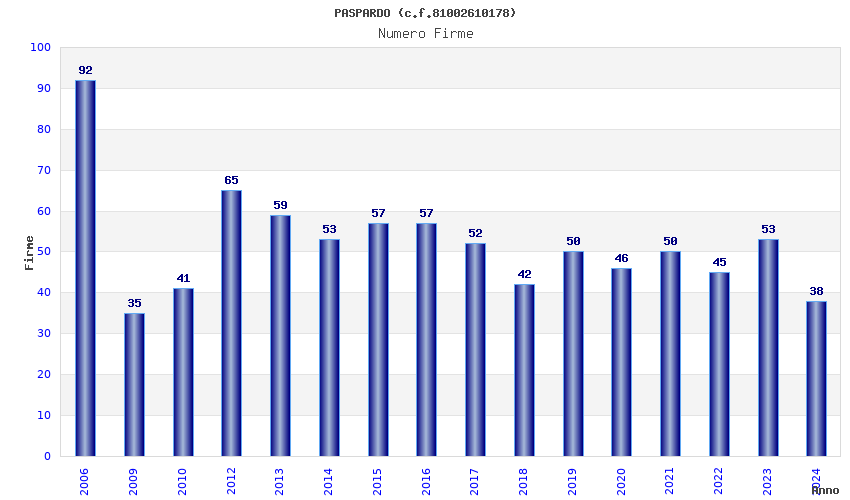 | Anno | Firme | Importi | Media | Naz. | Reg. | Prov. | Comu. |