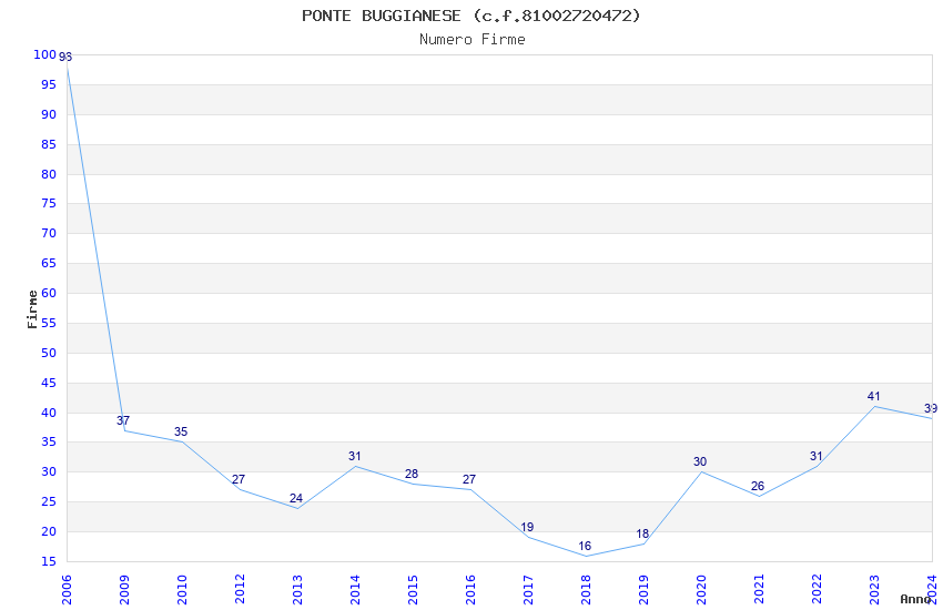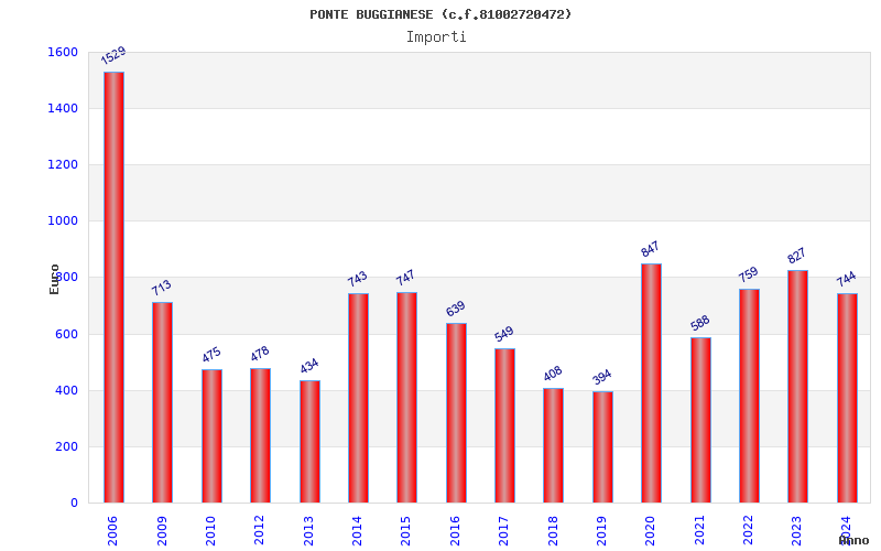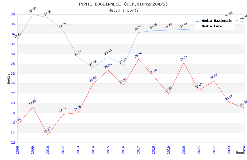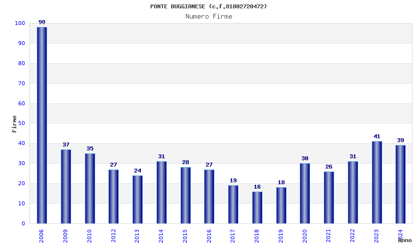 | Anno | Firme | Importi | Media | Naz. | Reg. | Prov. | Comu. |