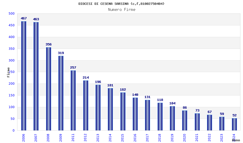 | Anno | Firme | Importi | Media | Naz. | Reg. | Prov. | Comu. |