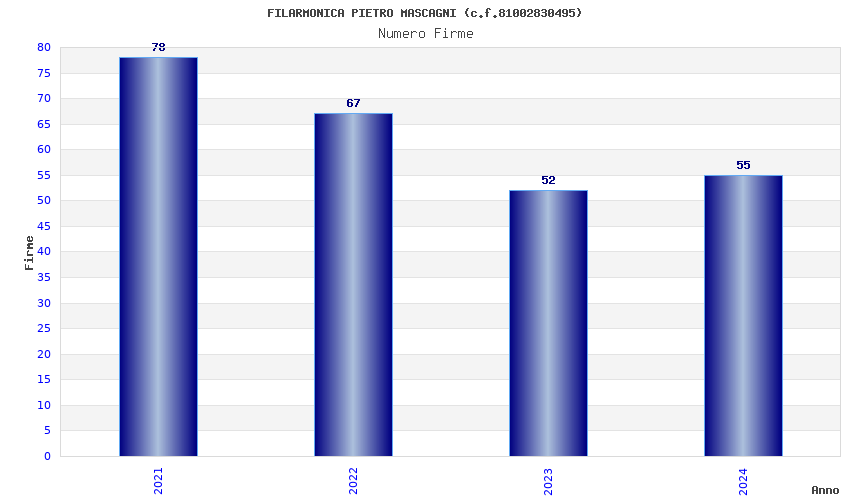 | Anno | Firme | Importi | Media | Naz. | Reg. | Prov. | Comu. |