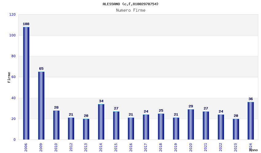 | Anno | Firme | Importi | Media | Naz. | Reg. | Prov. | Comu. |