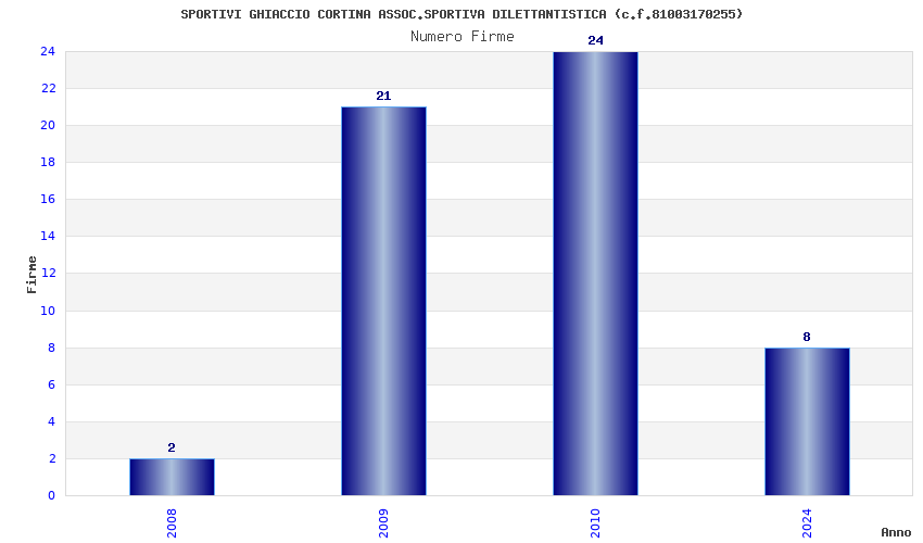 | Anno | Firme | Importi | Media | Naz. | Reg. | Prov. | Comu. |