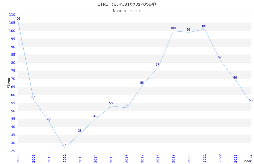 | 2006 | 106 | 2.527,87 | 23,85 | 13.294 | 1.156 | 55 | 1 |
