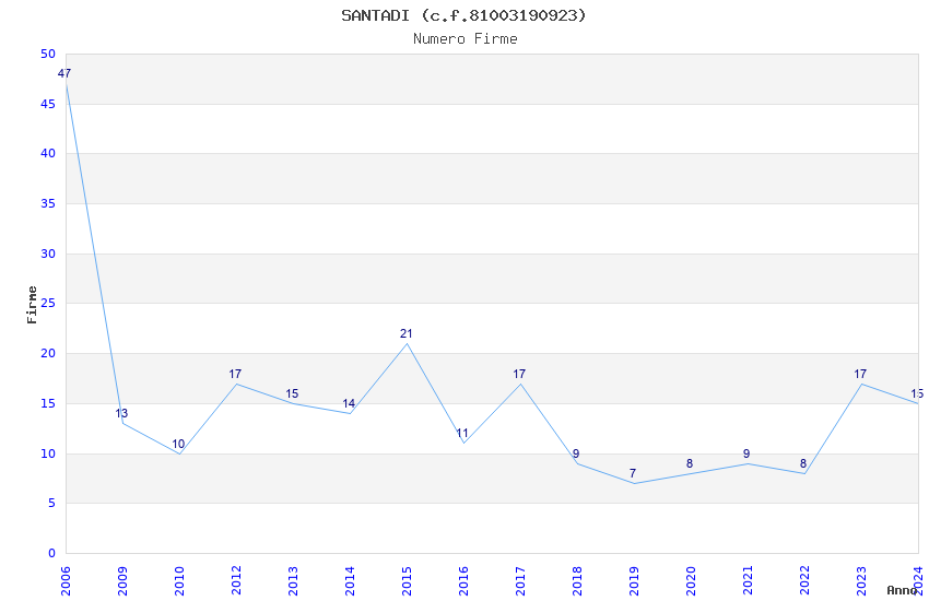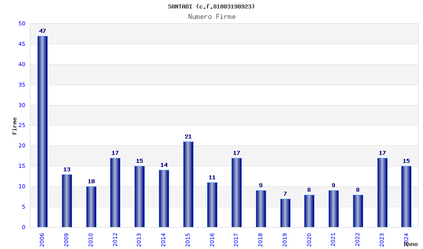 | Anno | Firme | Importi | Media | Naz. | Reg. | Prov. | Comu. |