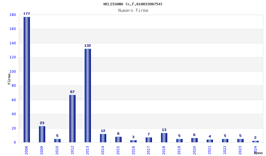 Anno Firme Importi Media Naz. Reg. Prov. Comu.
