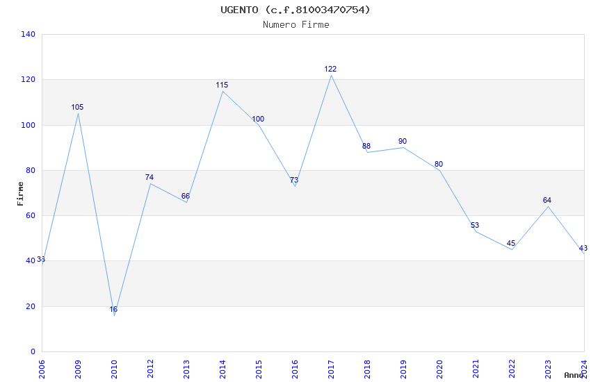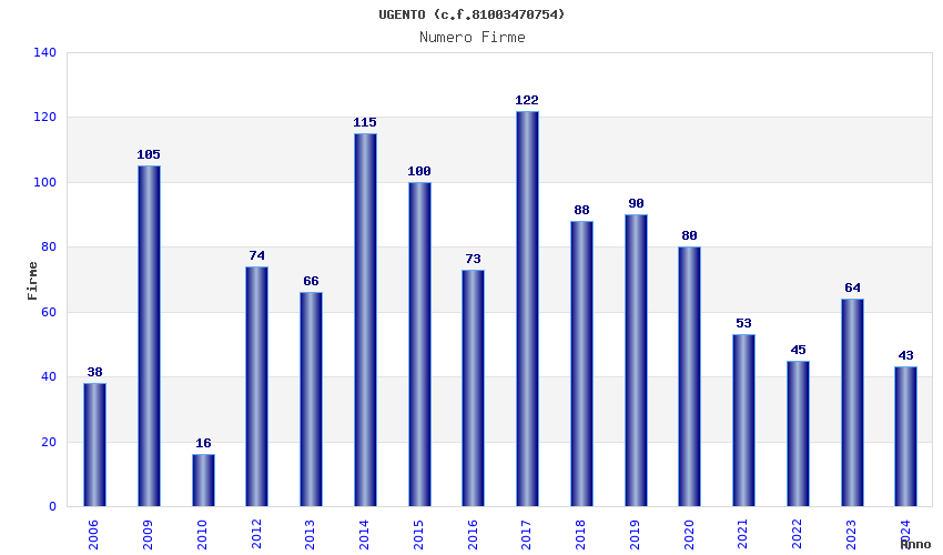 | Anno | Firme | Importi | Media | Naz. | Reg. | Prov. | Comu. |