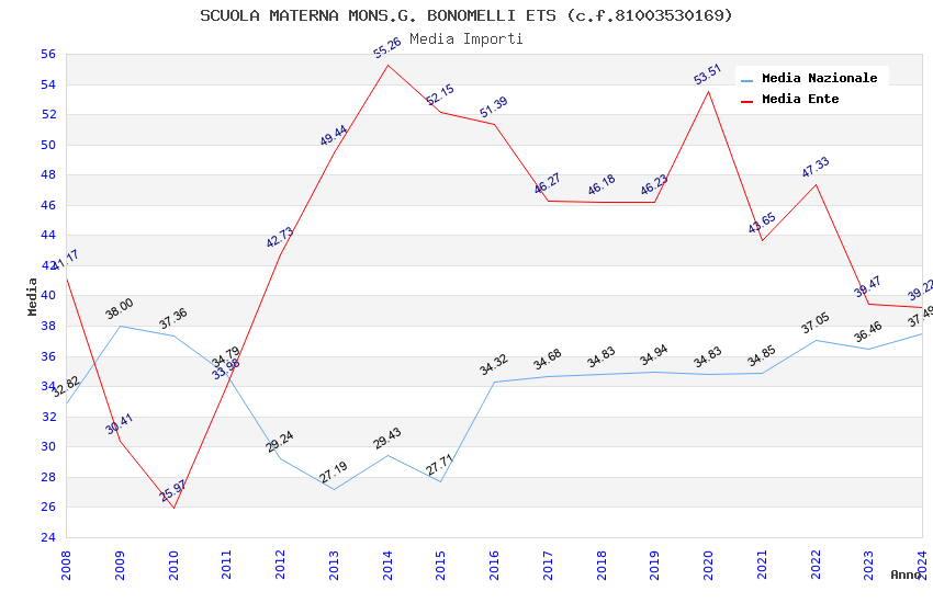 | Anno | Firme | Importi | Media | Naz. | Reg. | Prov. | Comu. |
