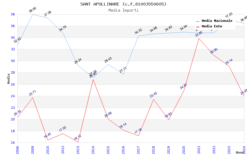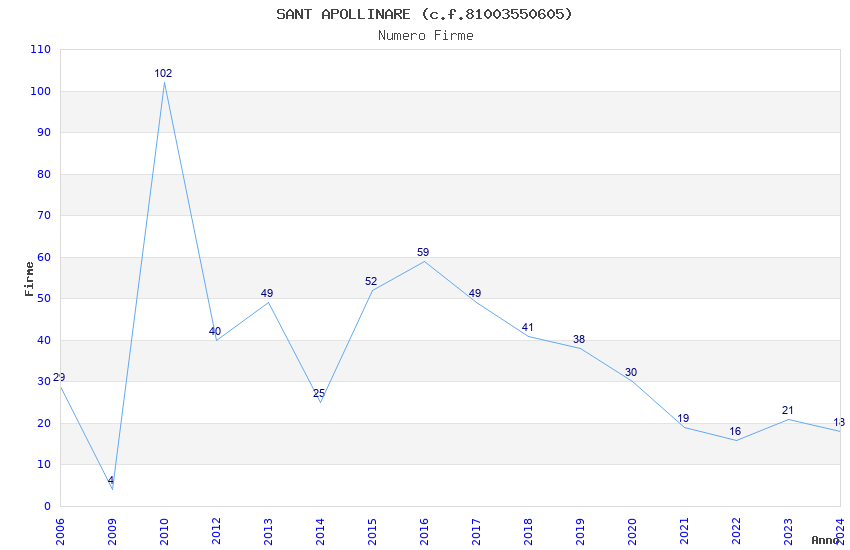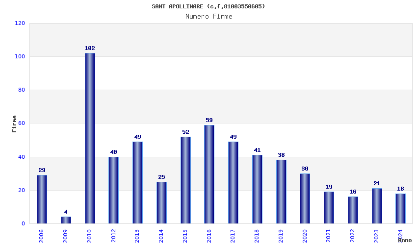 | Anno | Firme | Importi | Media | Naz. | Reg. | Prov. | Comu. |
