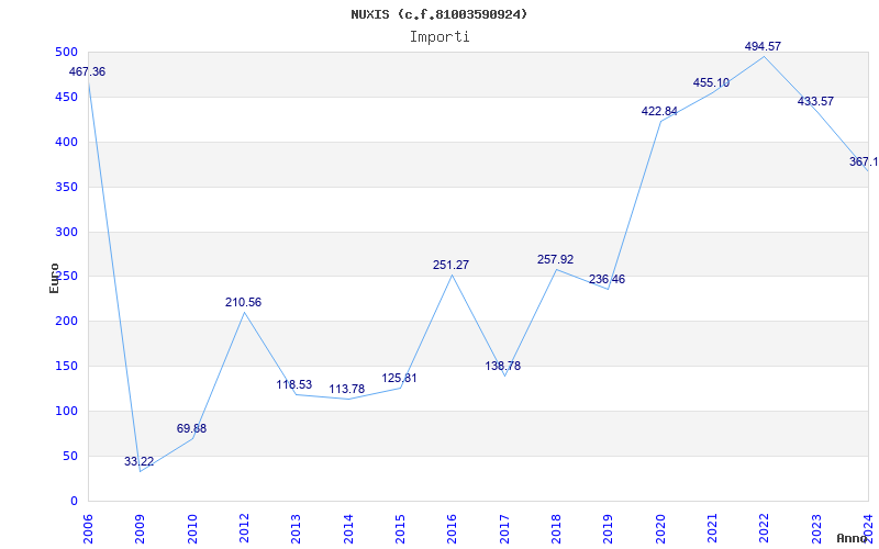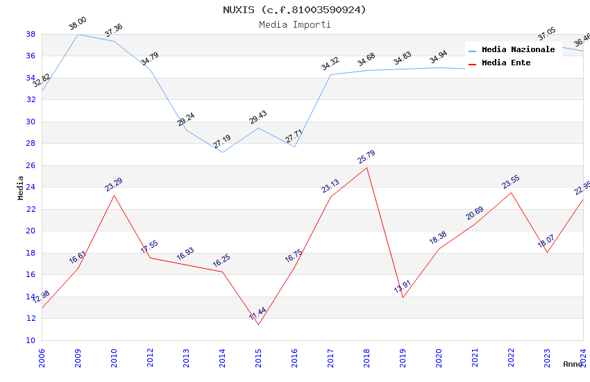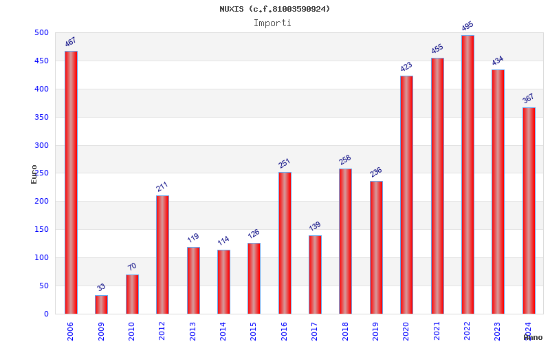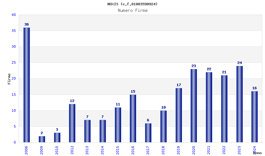 | Anno | Firme | Importi | Media | Naz. | Reg. | Prov. | Comu. |