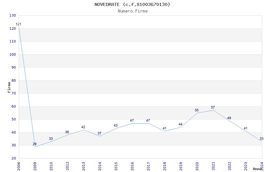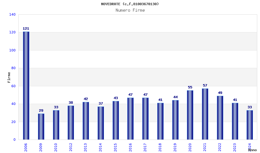| Anno | Firme | Importi | Media | Naz. | Reg. | Prov. | Comu. |