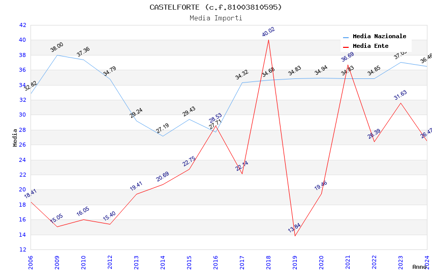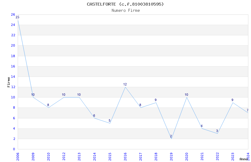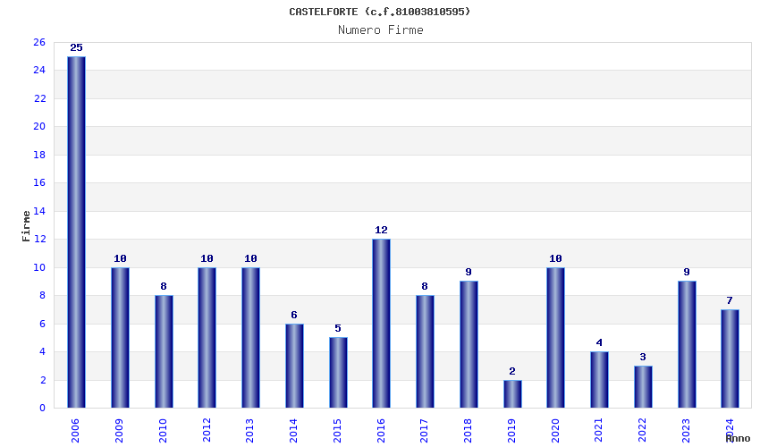 | Anno | Firme | Importi | Media | Naz. | Reg. | Prov. | Comu. |