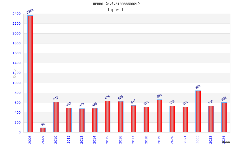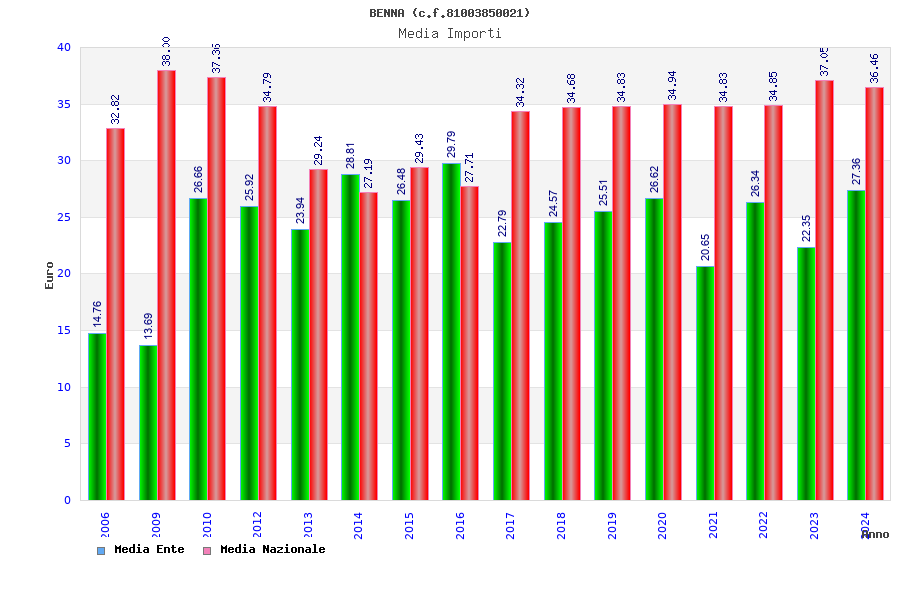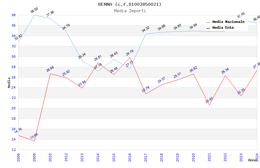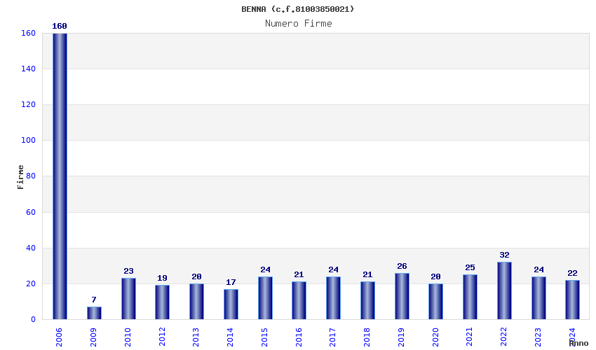 | Anno | Firme | Importi | Media | Naz. | Reg. | Prov. | Comu. |