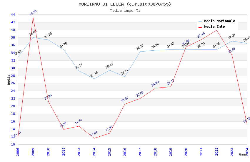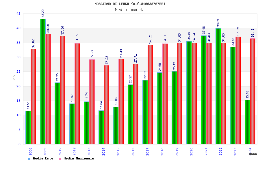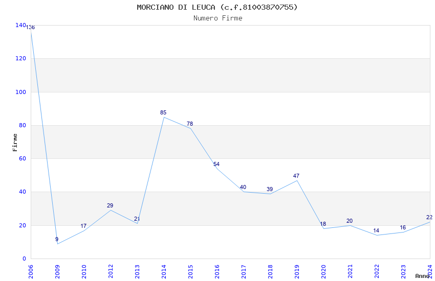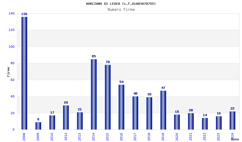 | Anno | Firme | Importi | Media | Naz. | Reg. | Prov. | Comu. |
