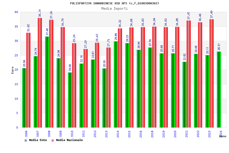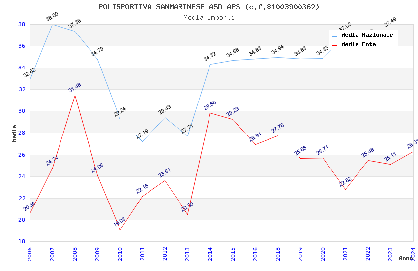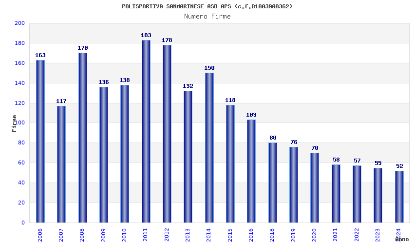 | Anno | Firme | Importi | Media | Naz. | Reg. | Prov. | Comu. |