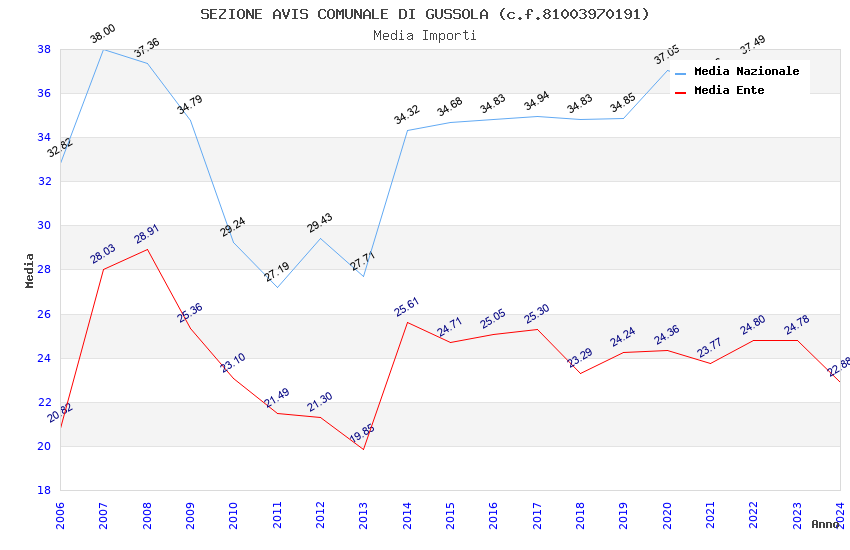 | Anno | Firme | Importi | Media | Naz. | Reg. | Prov. | Comu. |