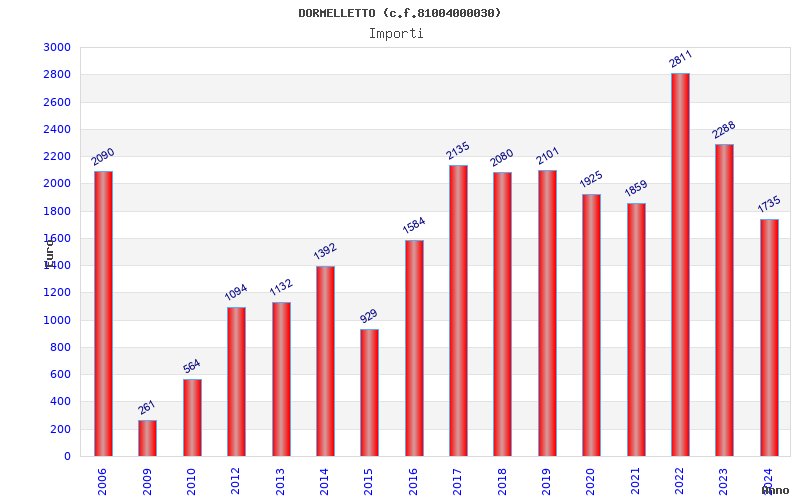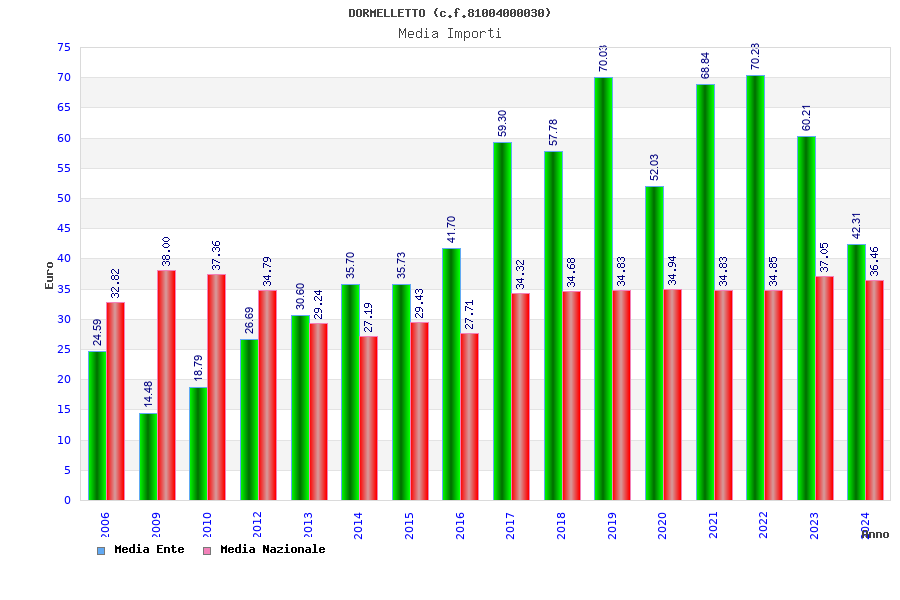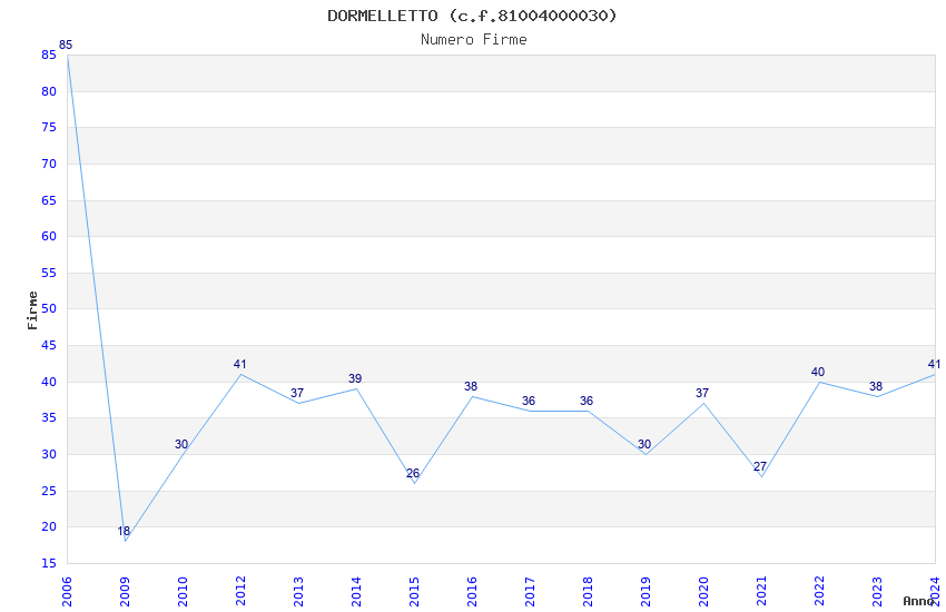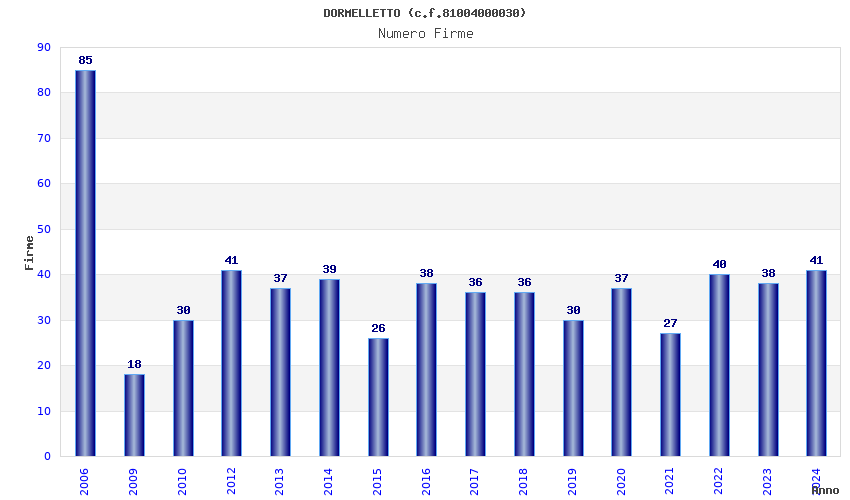 | Anno | Firme | Importi | Media | Naz. | Reg. | Prov. | Comu. |
