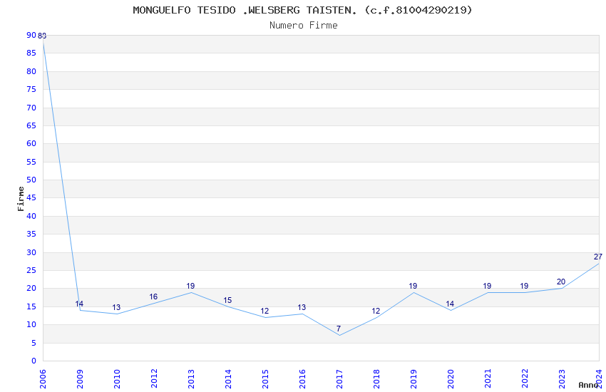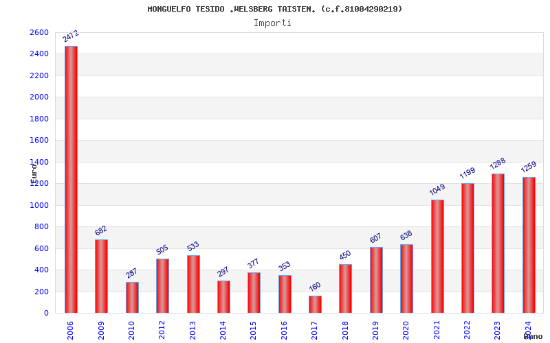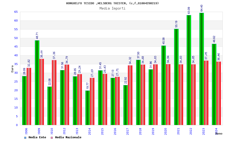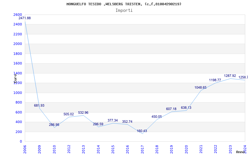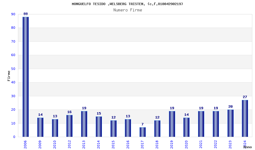 | Anno | Firme | Importi | Media | Naz. | Reg. | Prov. | Comu. |