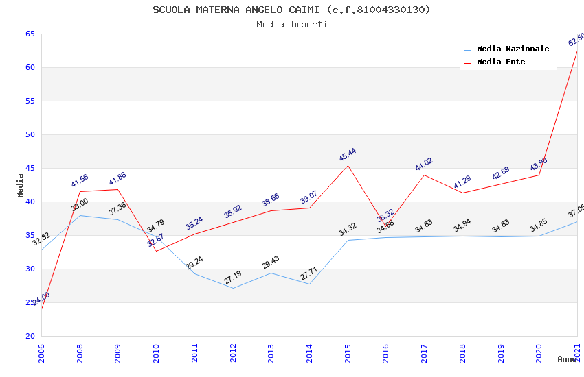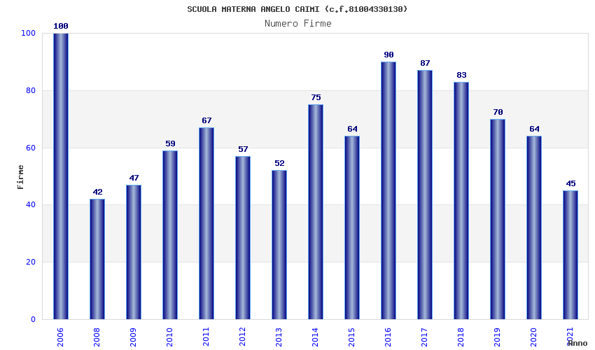 | Anno | Firme | Importi | Media | Naz. | Reg. | Prov. | Comu. |