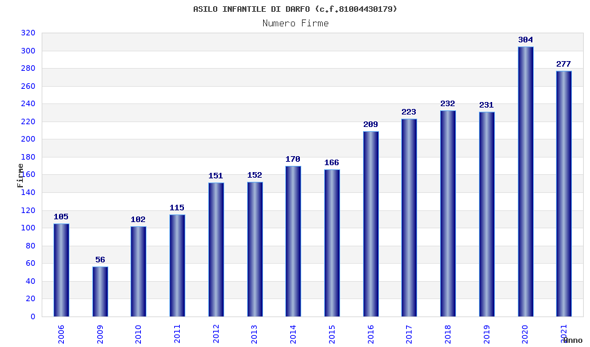 | Anno | Firme | Importi | Media | Naz. | Reg. | Prov. | Comu. |