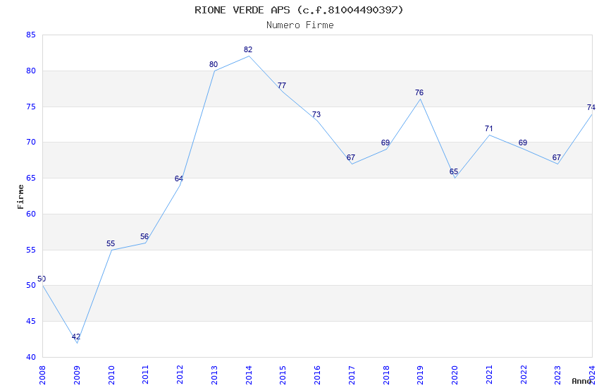 | Anno | Firme | Importi | Media | Naz. | Reg. | Prov. | Comu. |