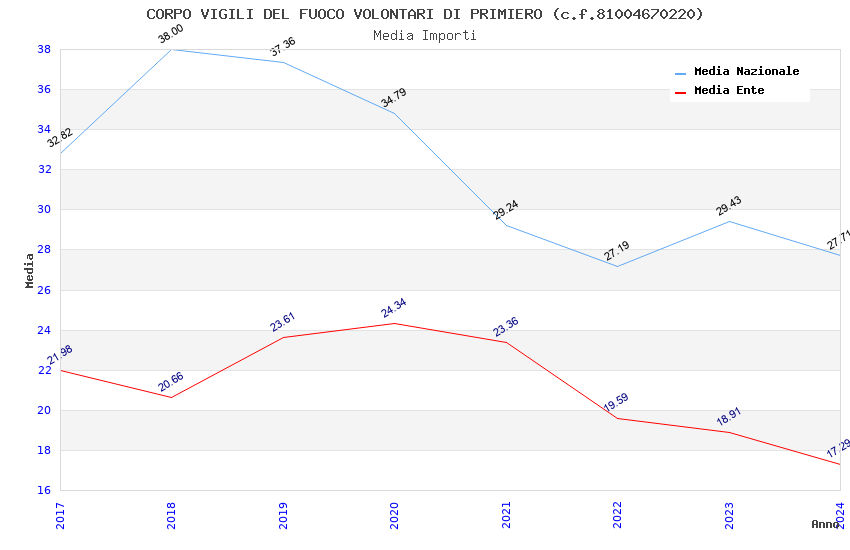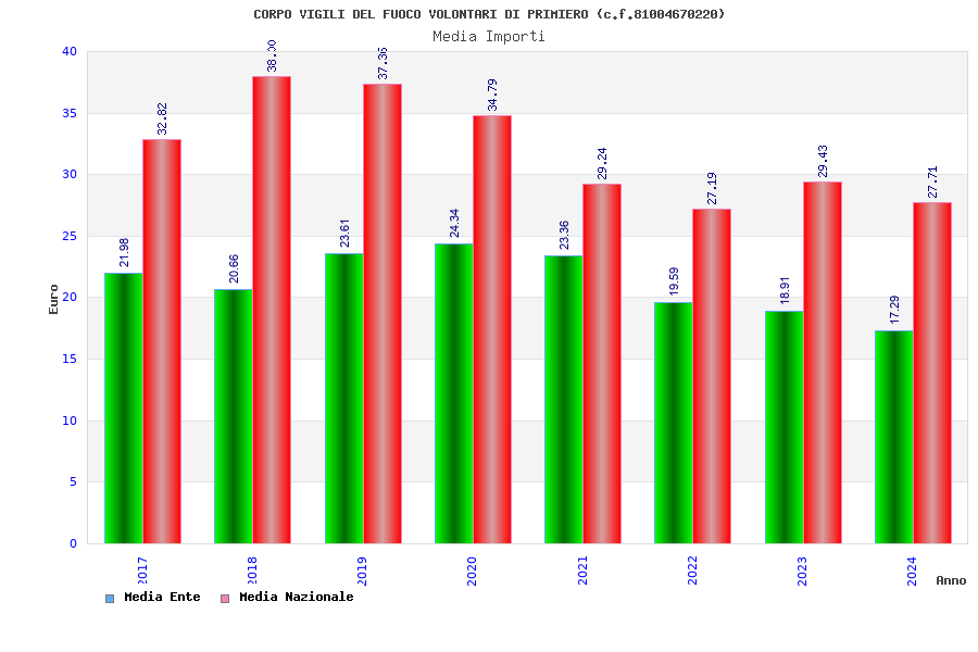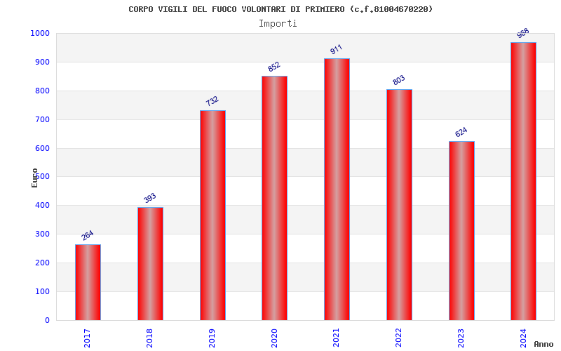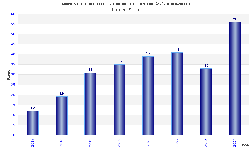 | Anno | Firme | Importi | Media | Naz. | Reg. | Prov. | Comu. |