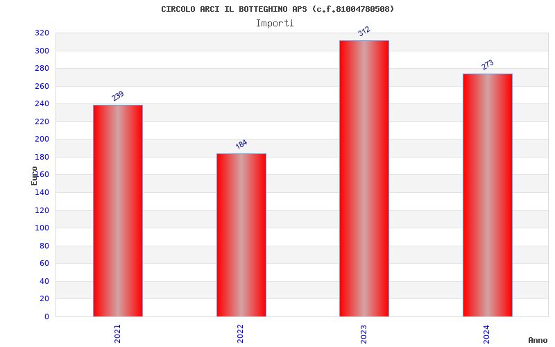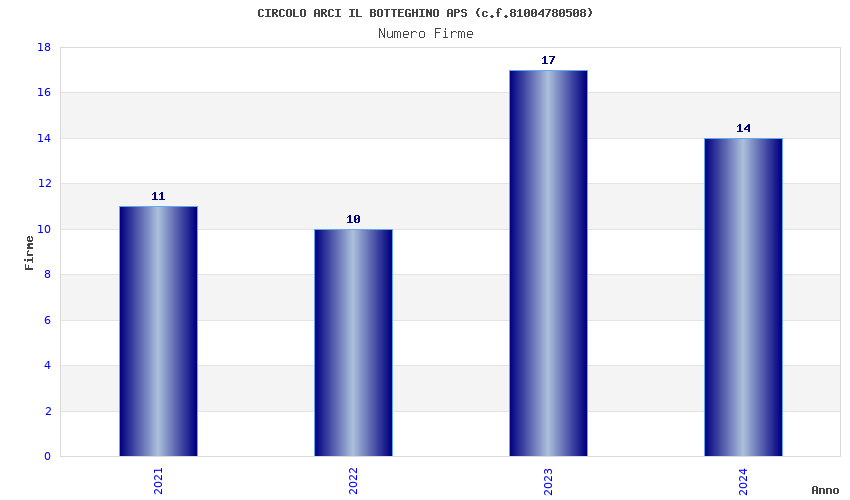 | Anno | Firme | Importi | Media | Naz. | Reg. | Prov. | Comu. |