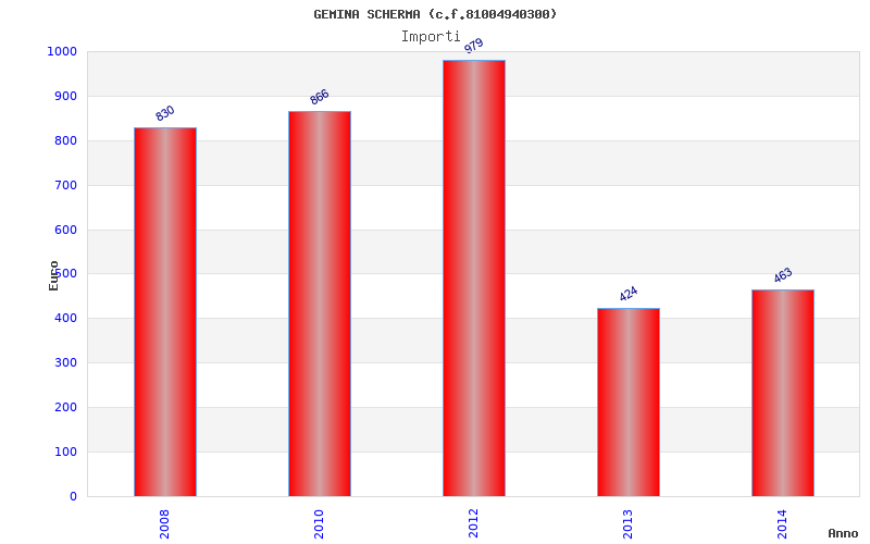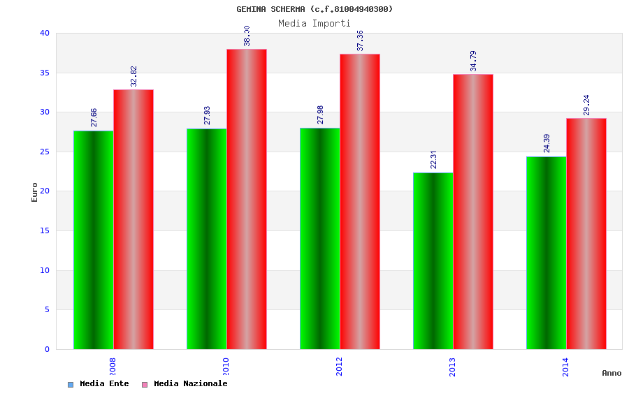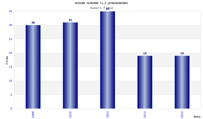 | Anno | Firme | Importi | Media | Naz. | Reg. | Prov. | Comu. |