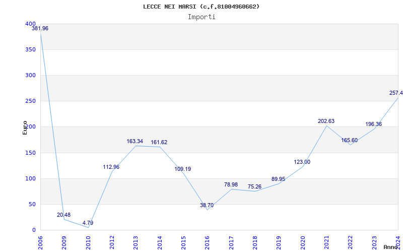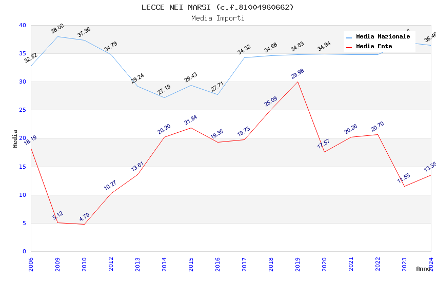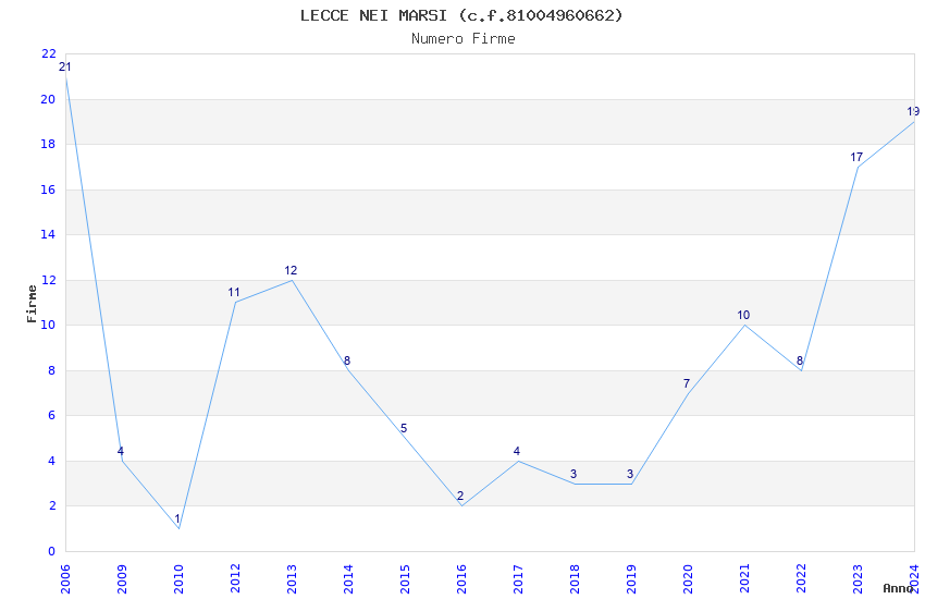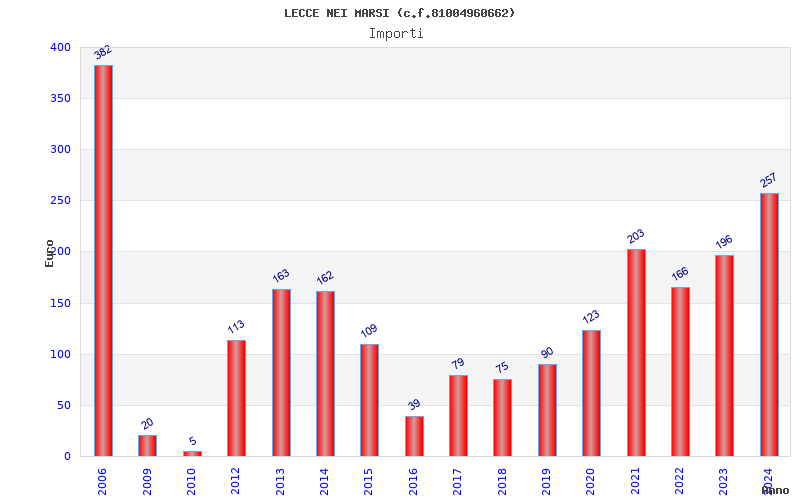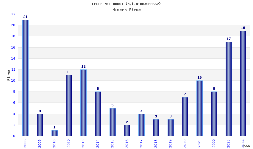 | Anno | Firme | Importi | Media | Naz. | Reg. | Prov. | Comu. |