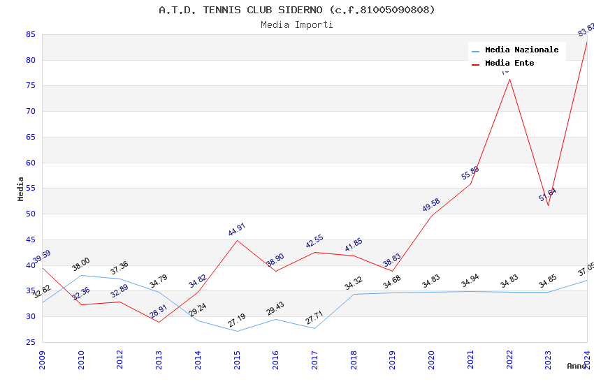 | Anno | Firme | Importi | Media | Naz. | Reg. | Prov. | Comu. |