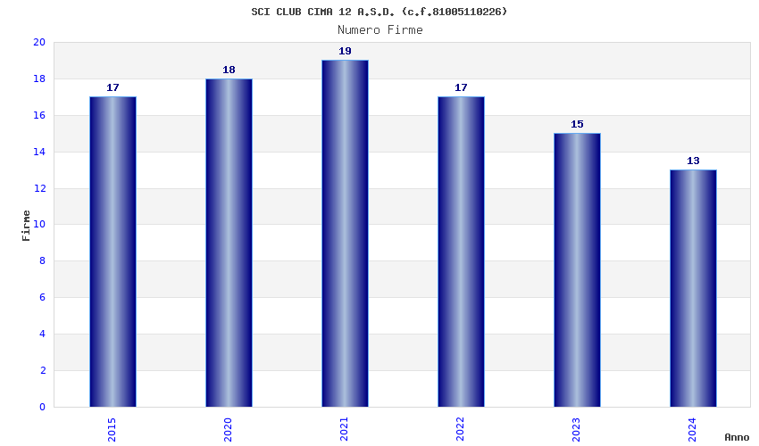 | Anno | Firme | Importi | Media | Naz. | Reg. | Prov. | Comu. |