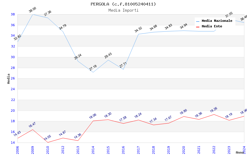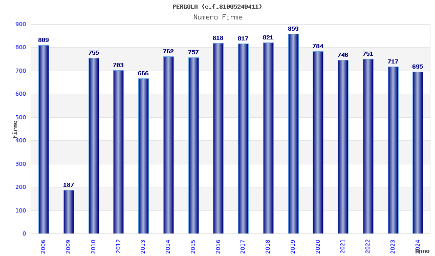 | Anno | Firme | Importi | Media | Naz. | Reg. | Prov. | Comu. |