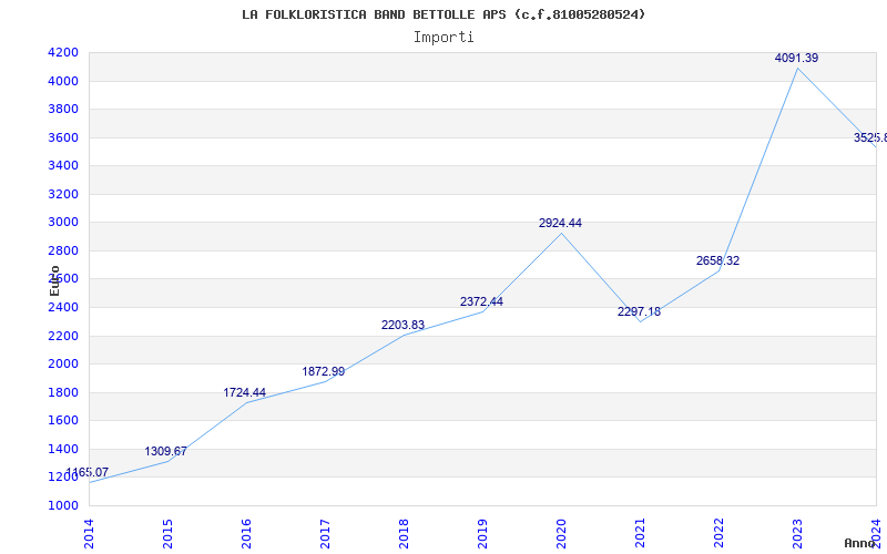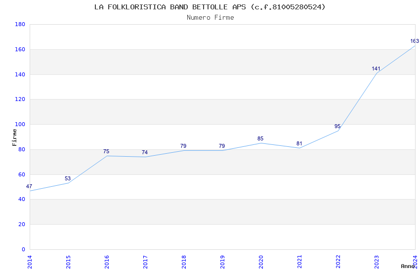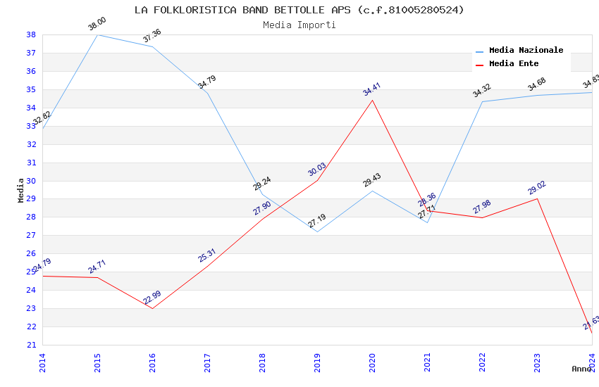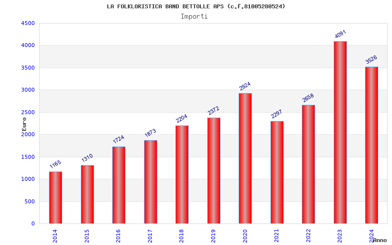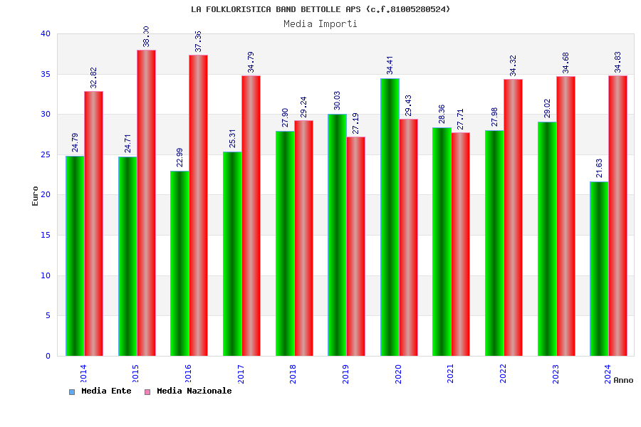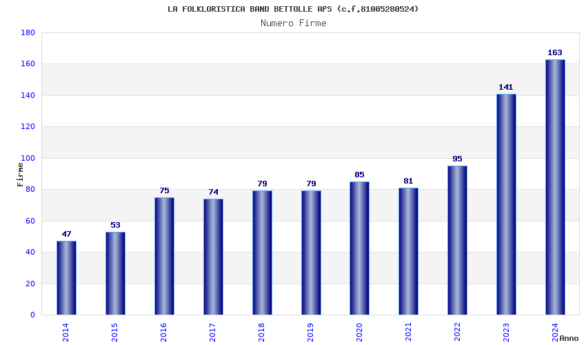 | Anno | Firme | Importi | Media | Naz. | Reg. | Prov. | Comu. |