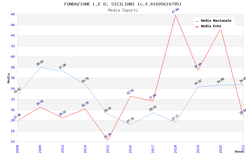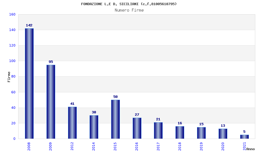 | Anno | Firme | Importi | Media | Naz. | Reg. | Prov. | Comu. |
