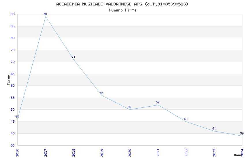 | 2017 | 89 | 3.476,30 | 39,06 | 15.462 | 966 | 83 | 5 |