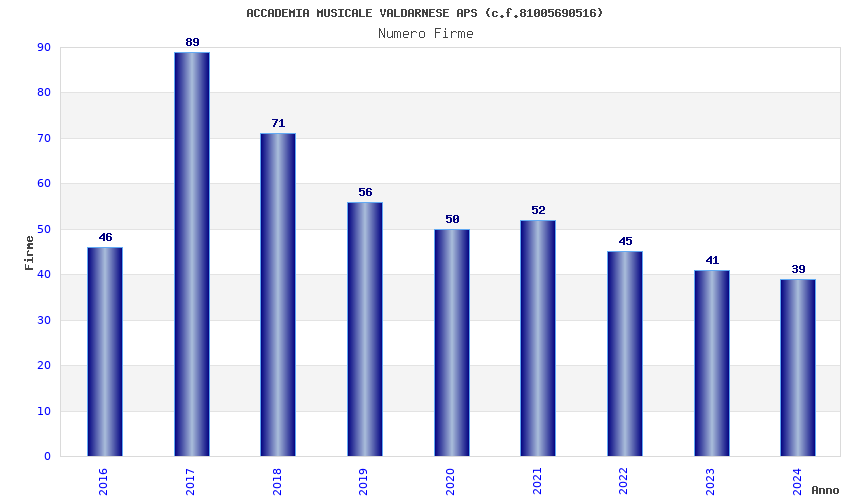 | Anno | Firme | Importi | Media | Naz. | Reg. | Prov. | Comu. |