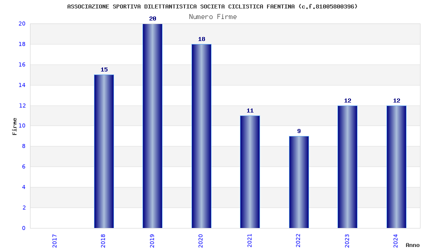 | Anno | Firme | Importi | Media | Naz. | Reg. | Prov. | Comu. |