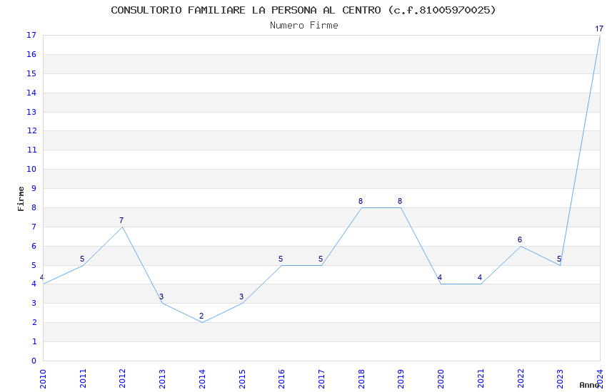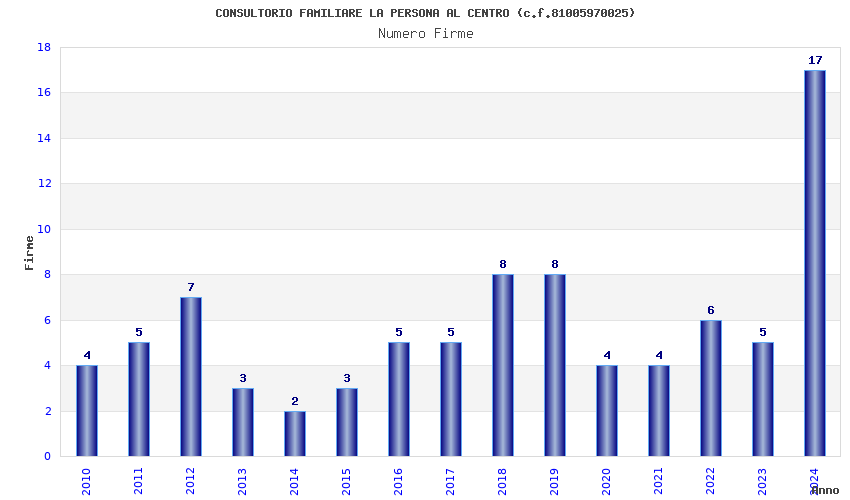 | Anno | Firme | Importi | Media | Naz. | Reg. | Prov. | Comu. |