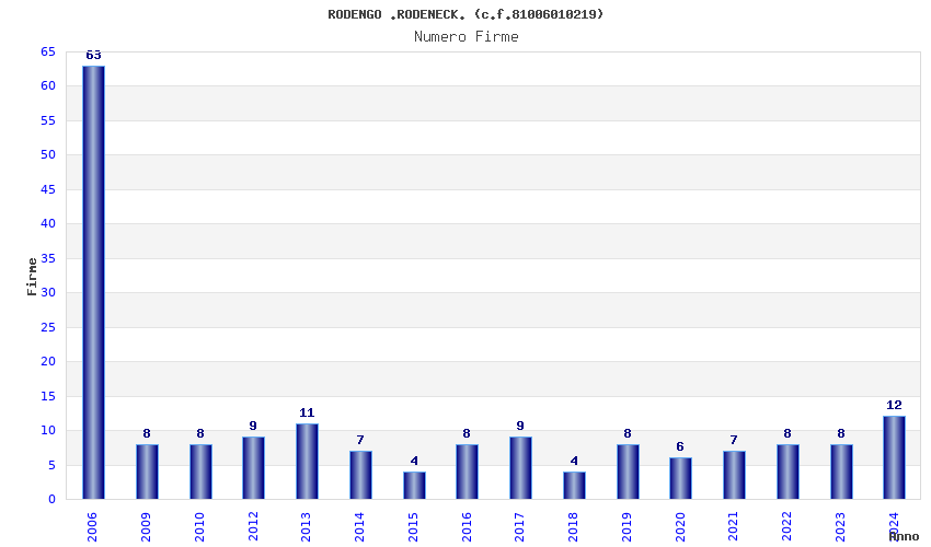 | Anno | Firme | Importi | Media | Naz. | Reg. | Prov. | Comu. |