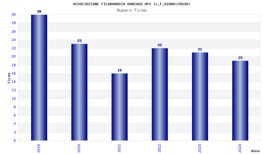 | Anno | Firme | Importi | Media | Naz. | Reg. | Prov. | Comu. |