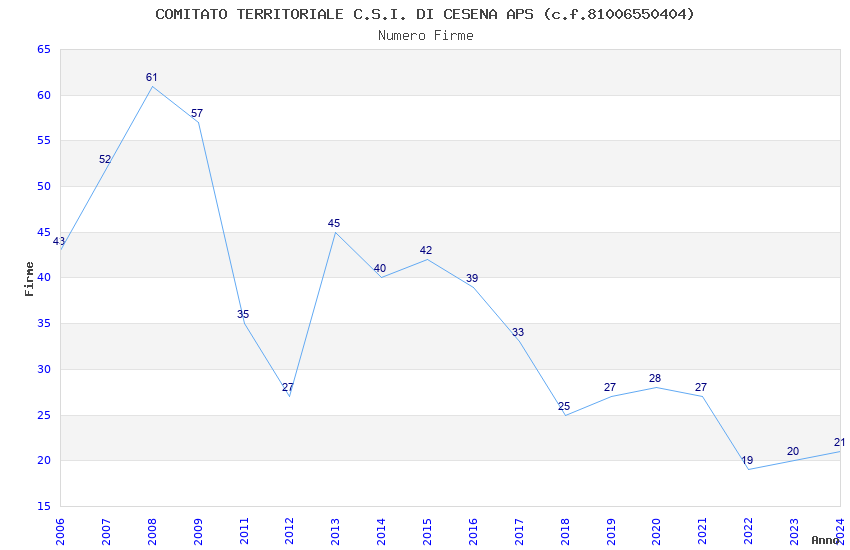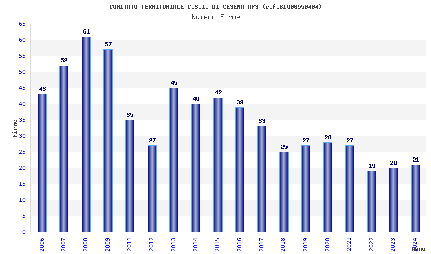 | Anno | Firme | Importi | Media | Naz. | Reg. | Prov. | Comu. |