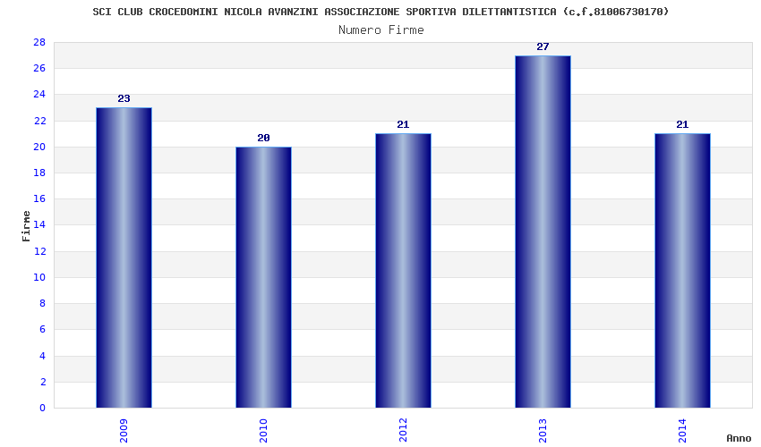 | Anno | Firme | Importi | Media | Naz. | Reg. | Prov. | Comu. |