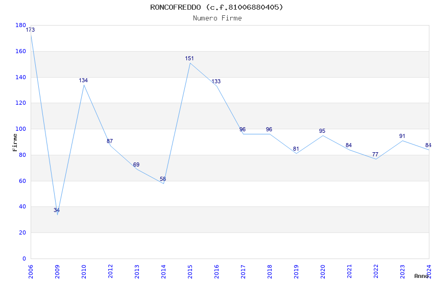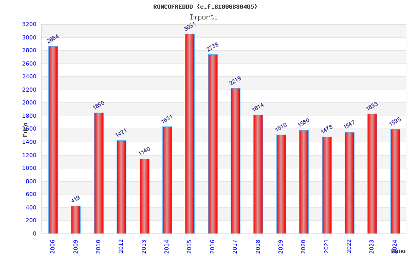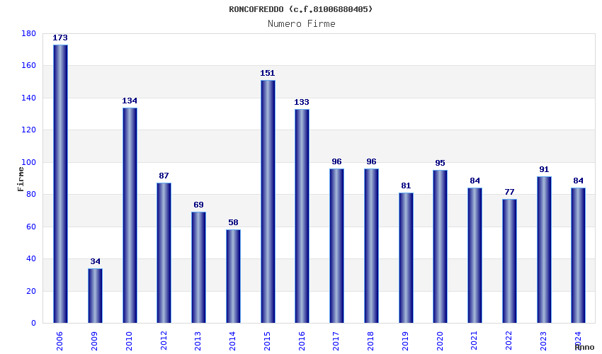 | Anno | Firme | Importi | Media | Naz. | Reg. | Prov. | Comu. |
