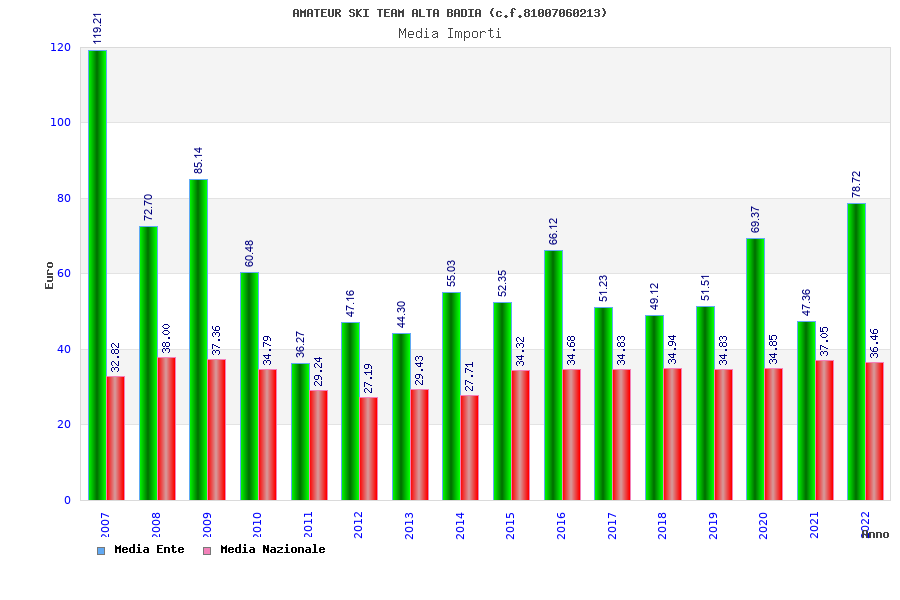 | Anno | Firme | Importi | Media | Naz. | Reg. | Prov. | Comu. |