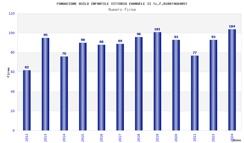 | Anno | Firme | Importi | Media | Naz. | Reg. | Prov. | Comu. |