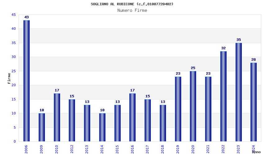 | Anno | Firme | Importi | Media | Naz. | Reg. | Prov. | Comu. |