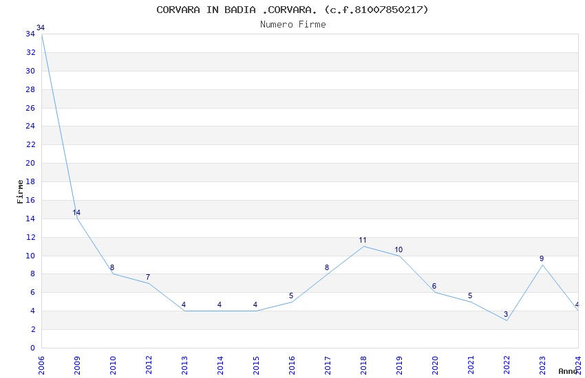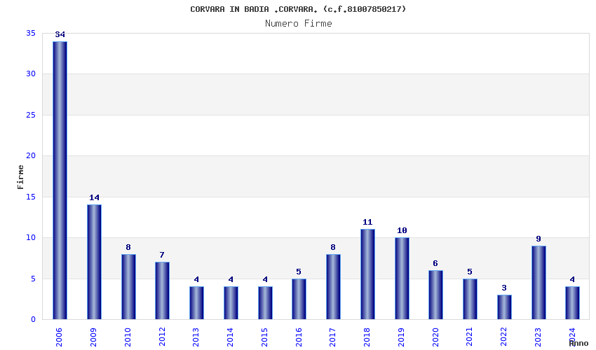 | Anno | Firme | Importi | Media | Naz. | Reg. | Prov. | Comu. |