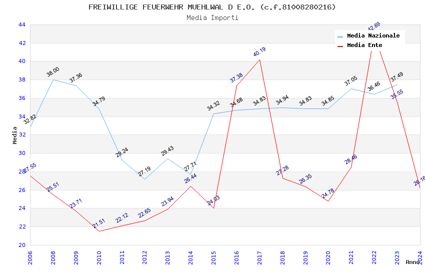 | Anno | Firme | Importi | Media | Naz. | Reg. | Prov. | Comu. |