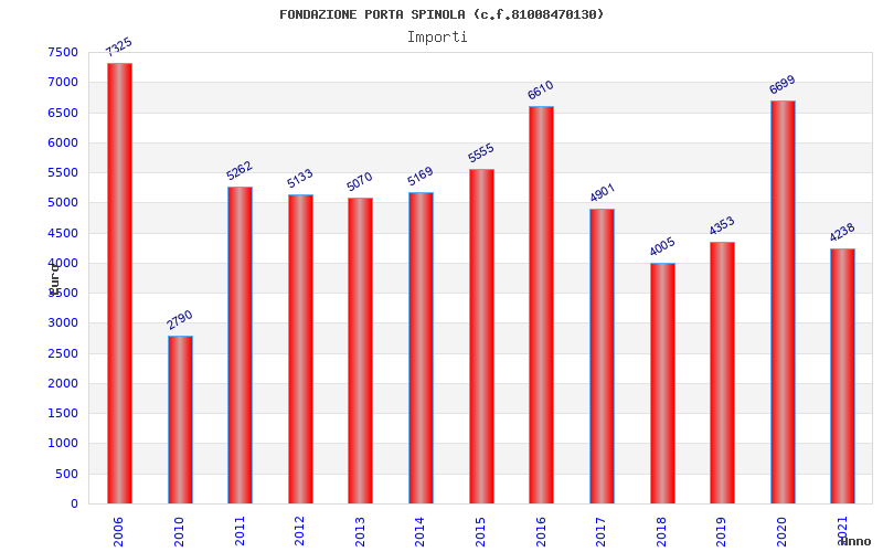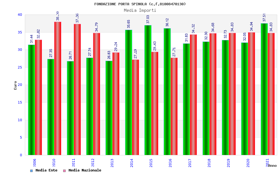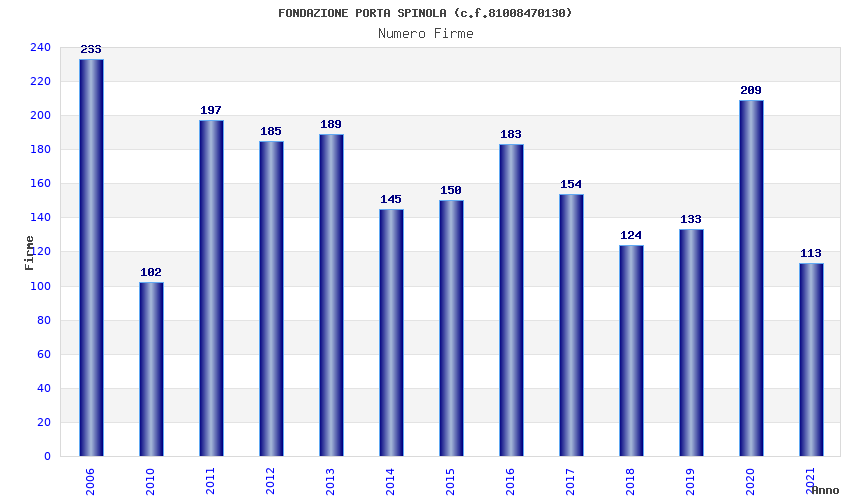 | Anno | Firme | Importi | Media | Naz. | Reg. | Prov. | Comu. |