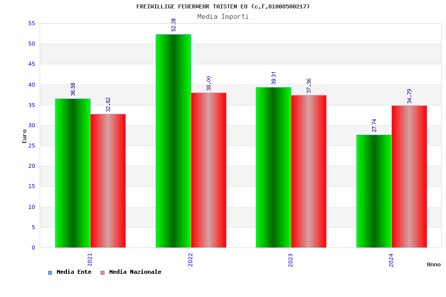 | Anno | Firme | Importi | Media | Naz. | Reg. | Prov. | Comu. |